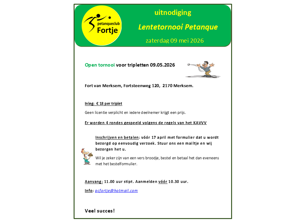 Na een tot drie keren gratis meespelen, heb je de mogelijkheid om voor € 30 per jaar verzekerd deel te nemen aan alle petanque activiteiten met de club.