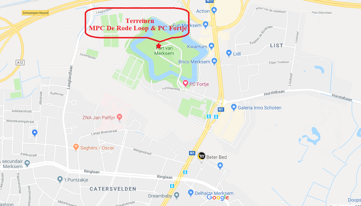 We spelen op de terreinen van MPC De Rode Loop, Fortsteenweg 120, 2170 Merksem.